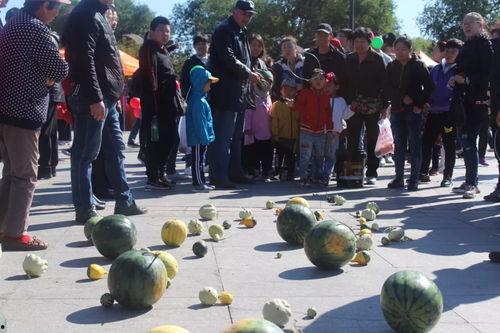 1. “吃瓜大赛”现场,观众们纷纷拿出手机拍照、录像,场面十分热闹。